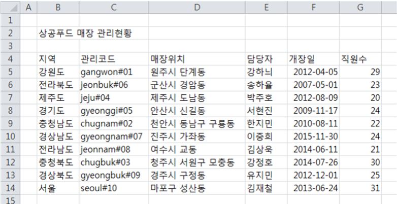 1. ‘매크로작업’ 시트의 [표]에서 다음과 같은 기능을 수행하는 매크로를 현재 통합 문서에 작성하고 실행하시오. (각 5점)