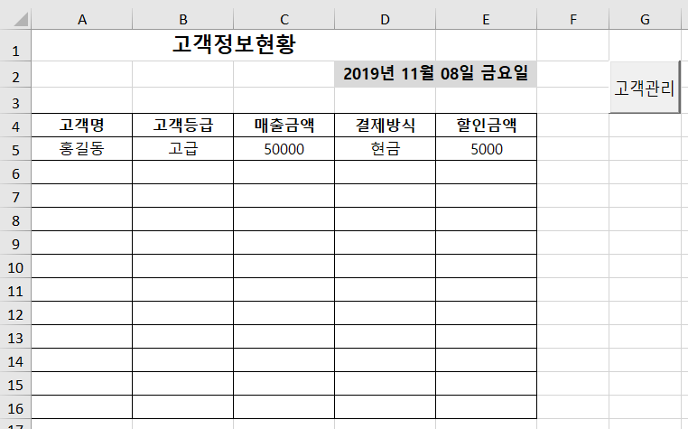 ② <고객관리> 폼의 <입력(cmd입력)> 버튼을 클릭하면 폼에 입력된 데이터가 시트의 표에 입력되어 있는 마지막 행 다음에 연속하여 추가되도록 프로시저를 작성하시오.