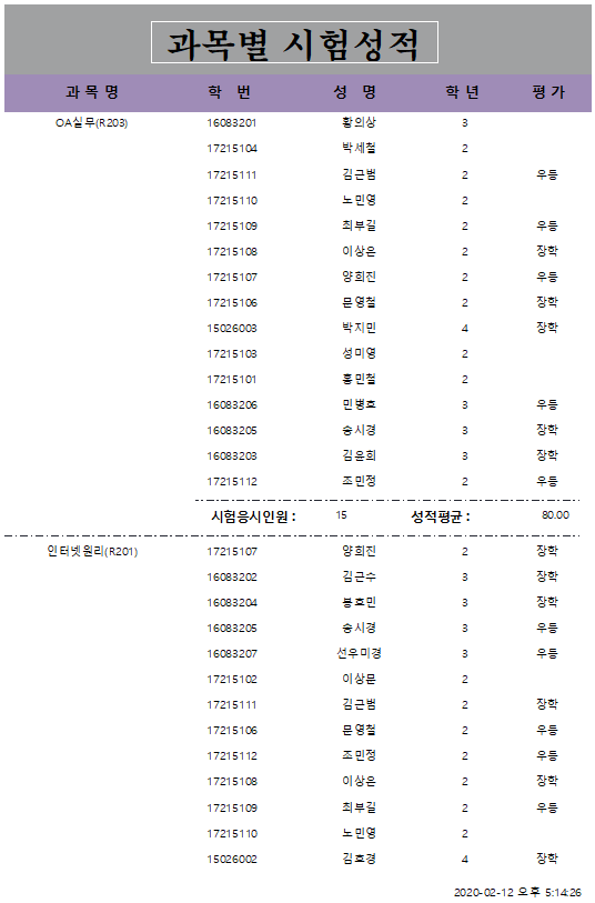 ▶ ‘과목별시험성적’ 보고서를 ‘인쇄 미리 보기’의 형태로 열 것