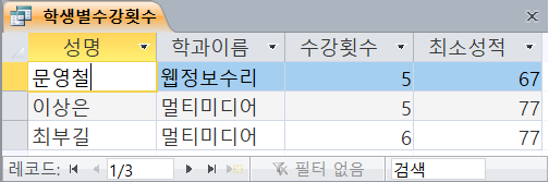 ▶ 쿼리 이름은 ‘학생별수강횟수’로 할 것