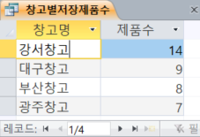 ▶ 제품수가 많은 순으로 상위 25%만 표시하시오. 쿼리이름은 ‘창고별저장제품수’로 하시오.