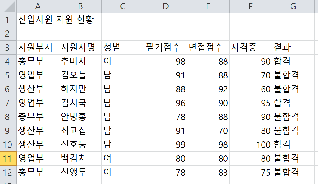 기출07회 문제를 풀어보았습니다. 이제 컴활2급 기출문제도 3회차 남았습니다.