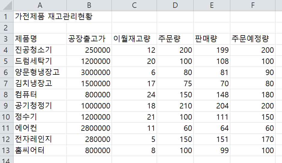 1. ‘분석작업-1’ 시트에서 다음의 지시사항을 처리하시오. (10점)
