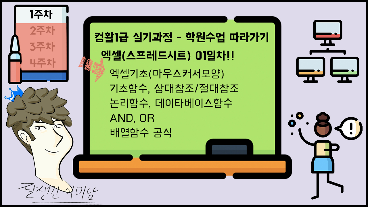 다음은 컴활1급 실기과정 - 학원수업 따라가기 01일차 영상입니다.