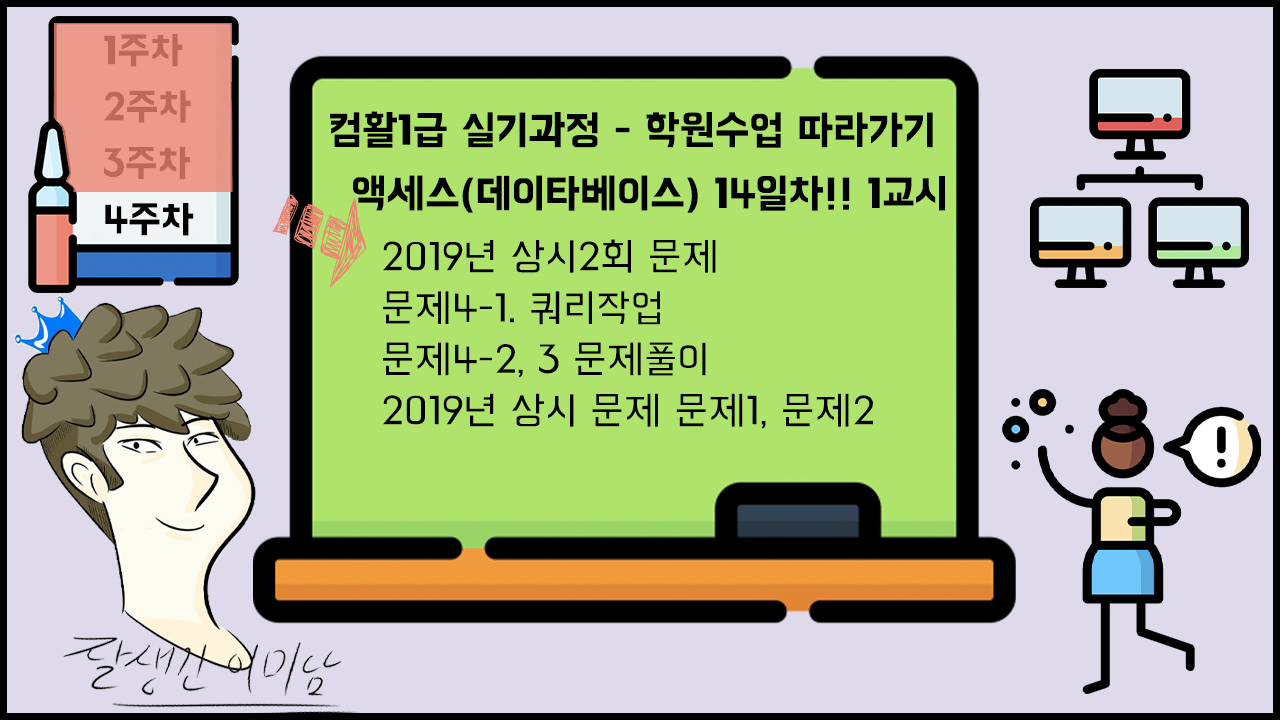 이제 엑셀과 액세스 스프레드시트와 데이타베이스를 기출문제를 하나씩 풀어보면서 유형들을 익히면 됩니다.