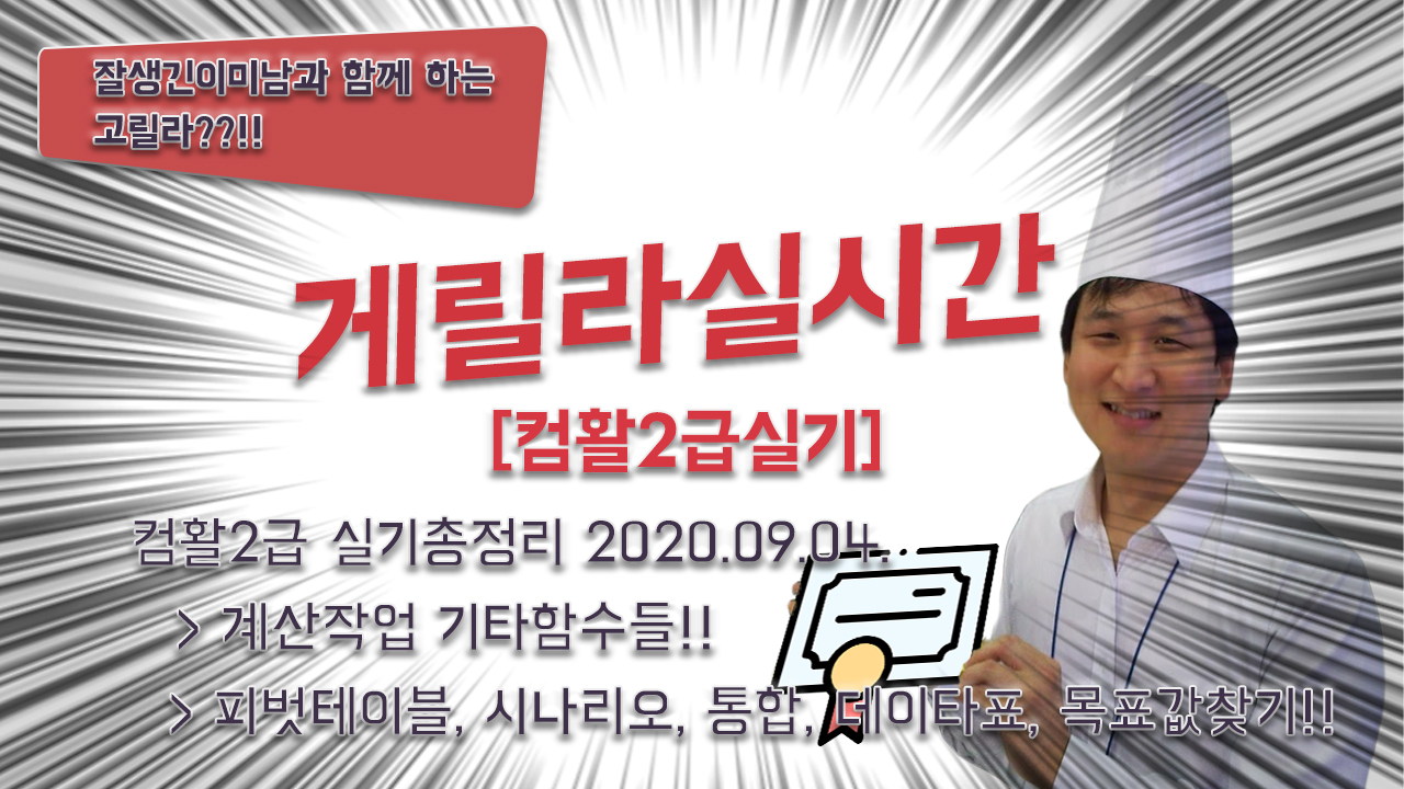 게릴라 실시간 - 컴활2급실기 총정리(기타함수/분석작업) 마무리