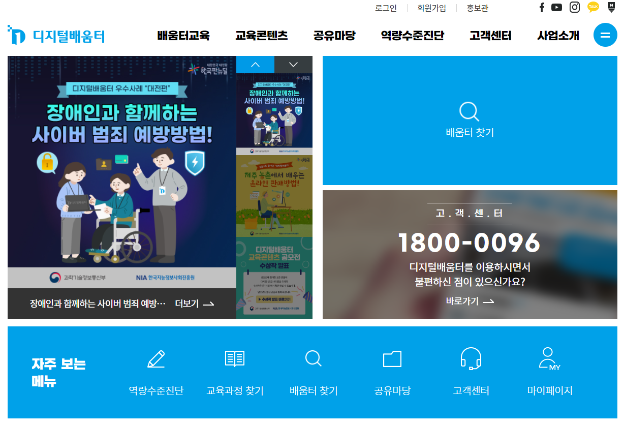 단! 디지털배움터의 모든 교육과 과정들을 신청하고 수강하시려면 먼저 회원가입을 하셔야 합니다.