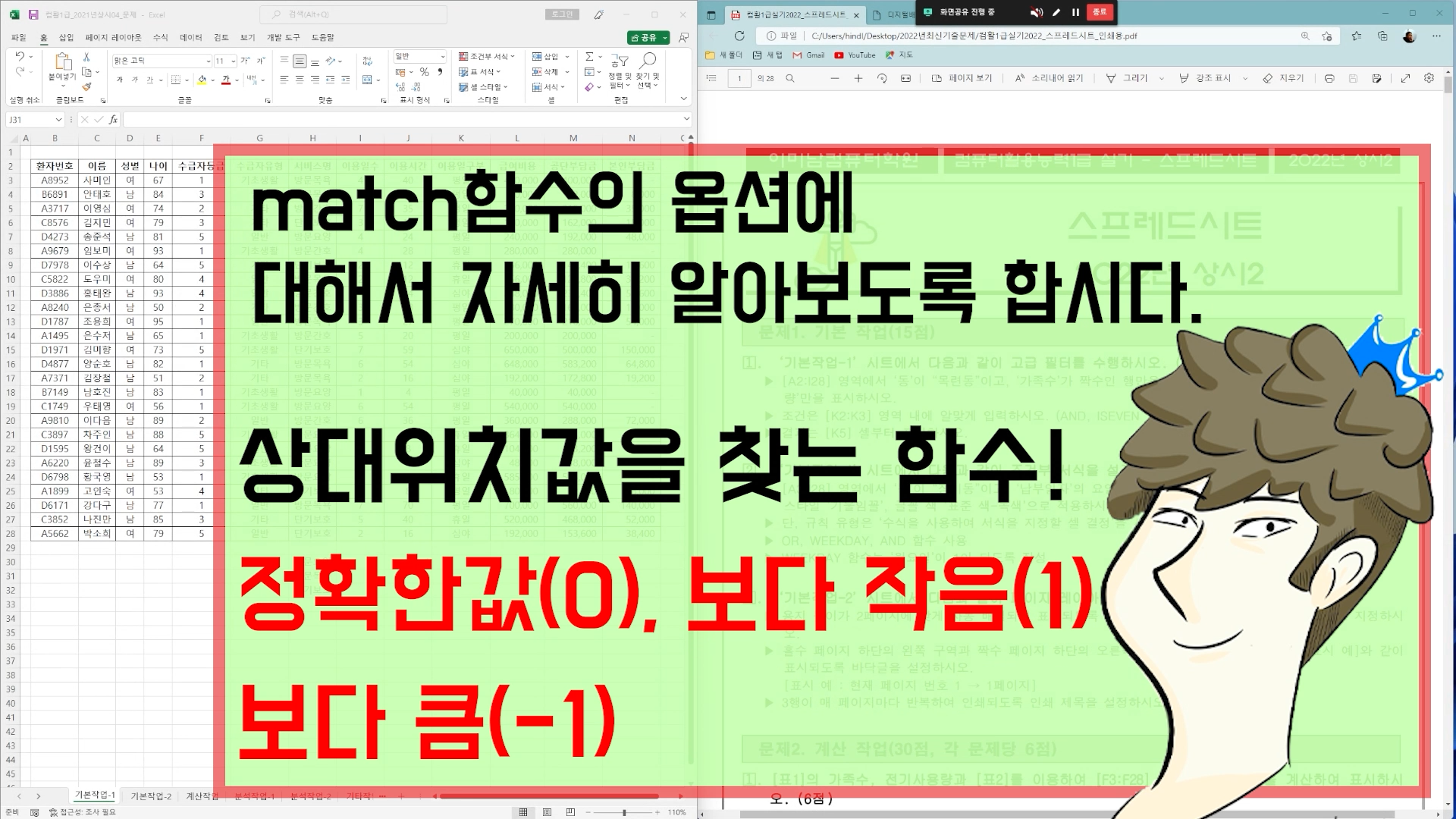 컴활1급실기 함수 계산문제 - match함수 이해하기