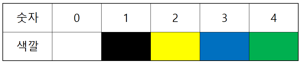 - 엑셀 칸에 맞추어 색깔을 넣습니다.