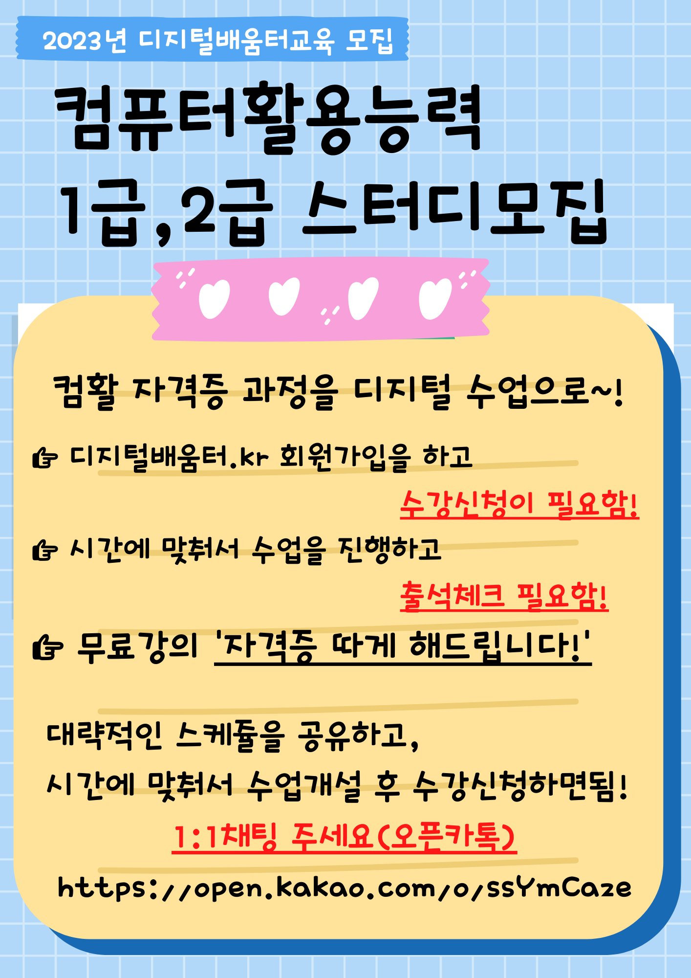 | 디지털배움터교육 - 컴활자격증 스터디모집 (0) | 2023.04.12 |