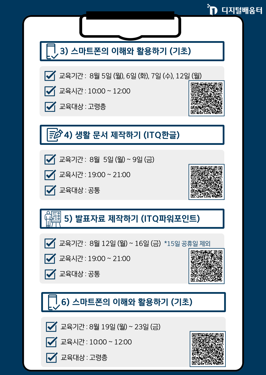 등등의 디지털 교육을 준비중입니다. 많은 관심과 참여 부탁드립니다.