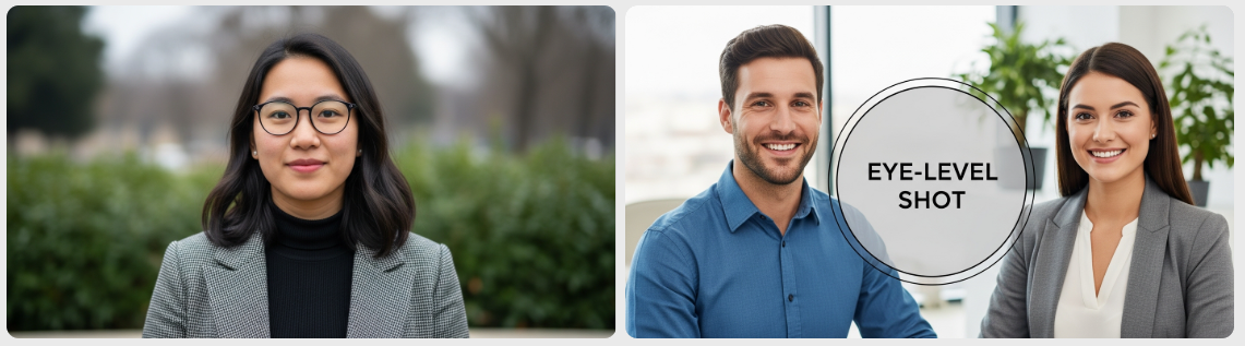 - 활용: 뉴스 진행, 인터뷰, 일상적인 대화 장면 등 사실적인 정보를 전달하거나 인물과 동등한 위치에서 공감을 유도할 때 주로 사용합니다. 스토리보드에 별도의 앵글 표시가 없다면 기본적으로 아이 레벨로 간주하기도 합니다.